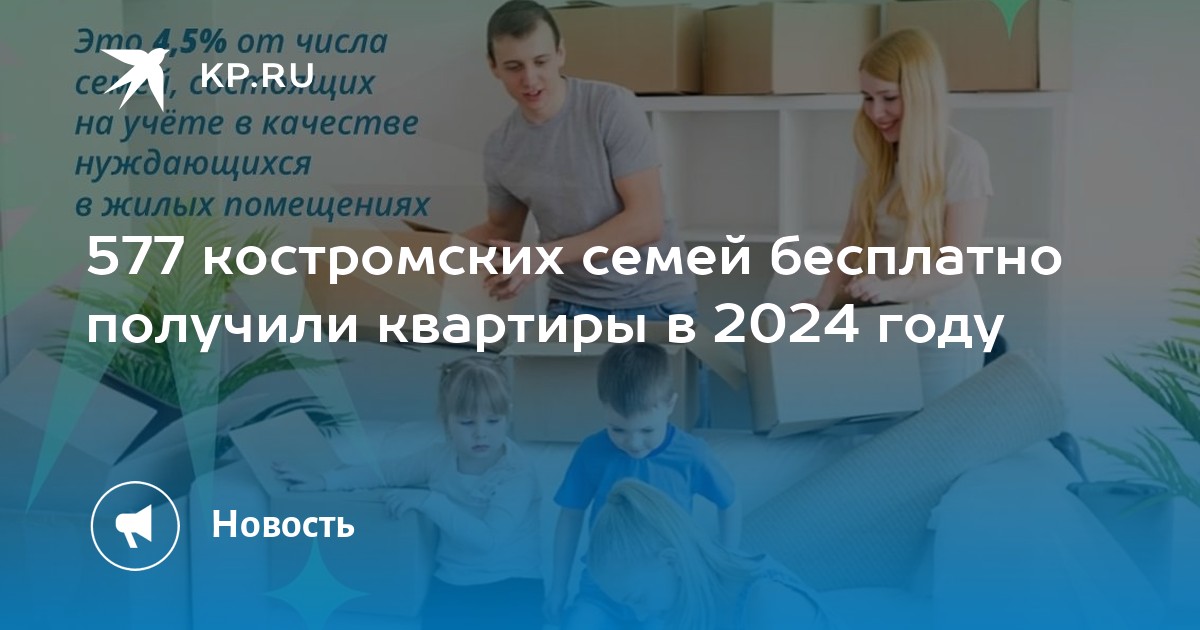 577 костромских семей бесплатно получили квартиры в 2024 году. Как сообщает Костромастат, это в 1,6 раз больше, чем годом ранее. Все костромичи стояли в очередях на получение жилья и улучшение жилищных условий.